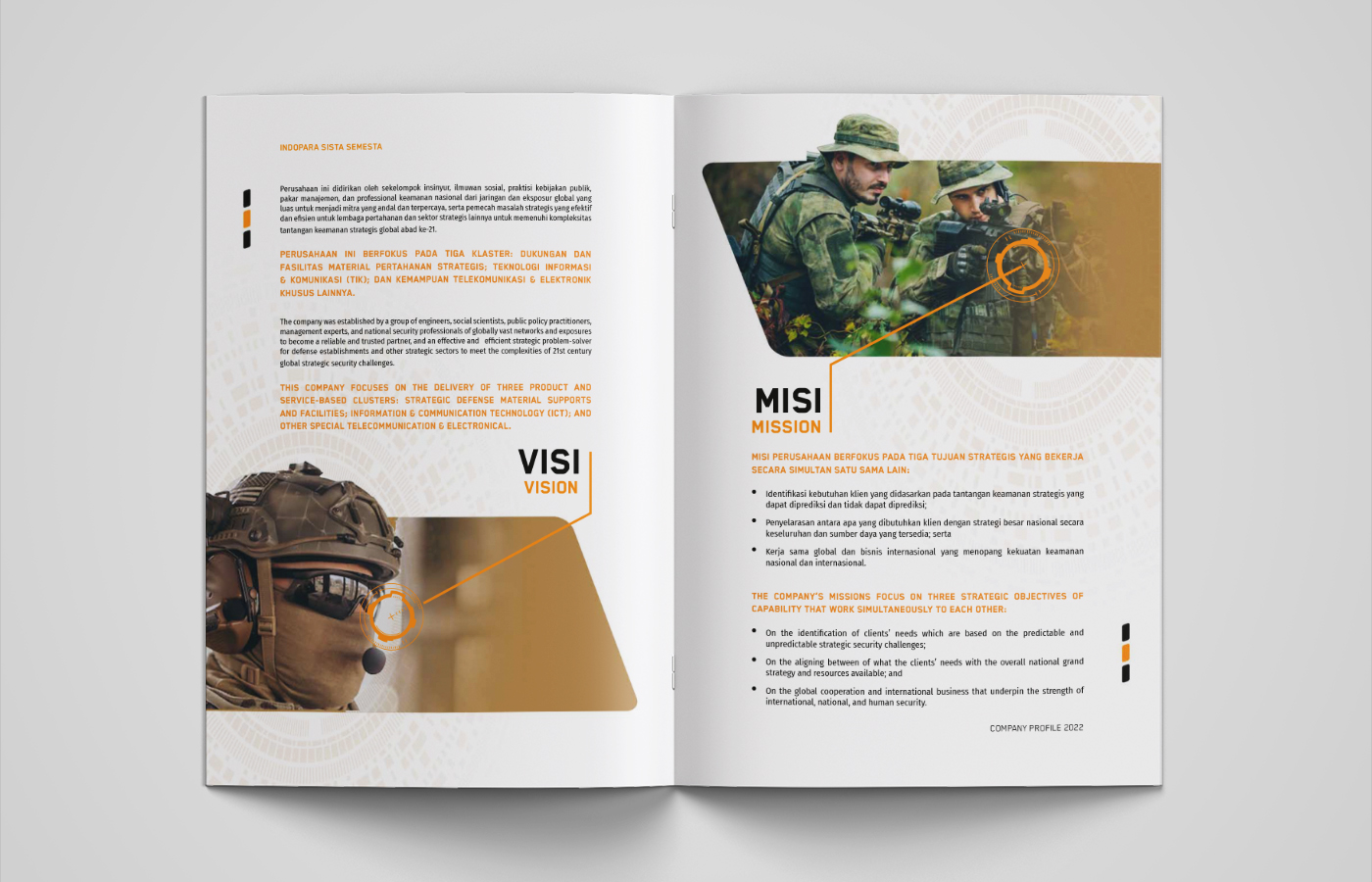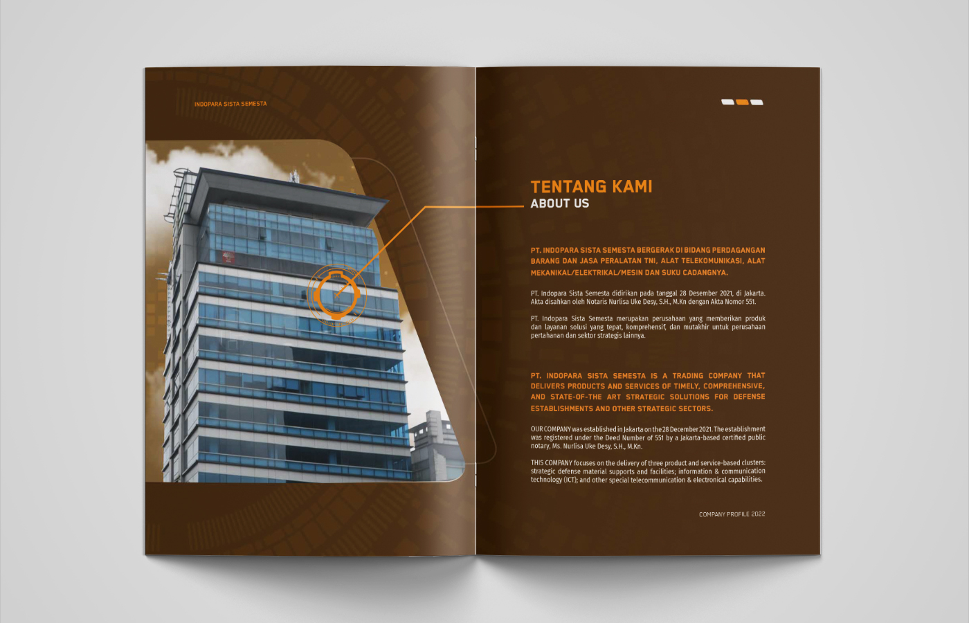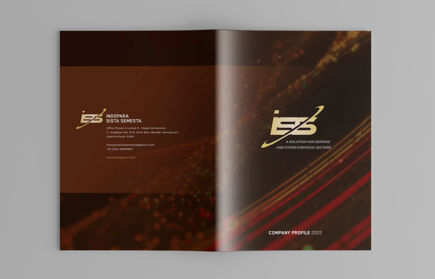 Desain Company Profile Indopara Sista Semesta, yang merupakan exportir dan distributor alutsista yang bekerjasama dengan institusi pertahanan di Indonesia.