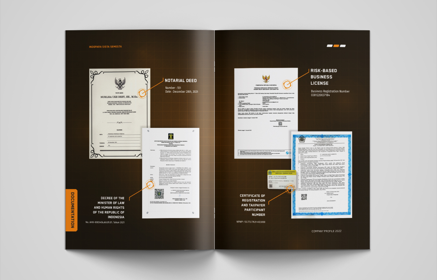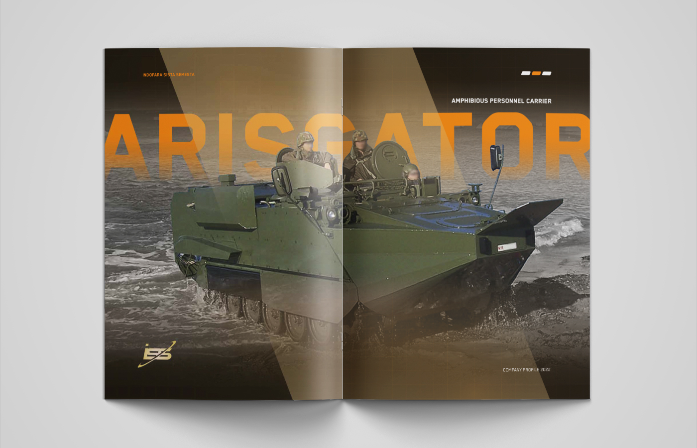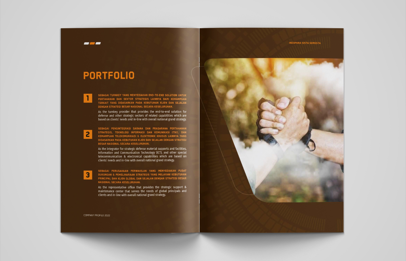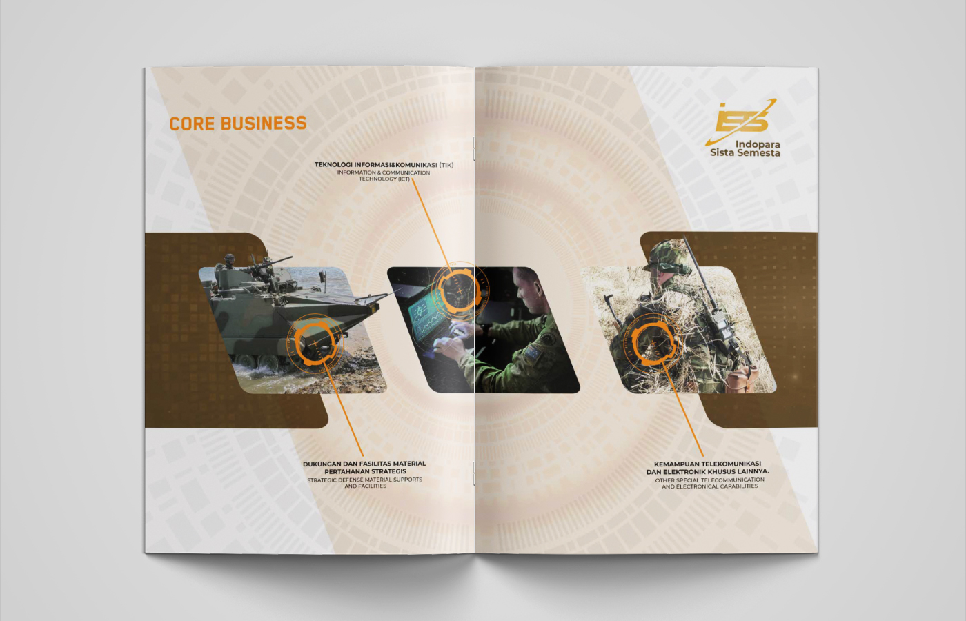 Desain Company Profile Indopara Sista Semesta, yang merupakan exportir dan distributor alutsista yang bekerjasama dengan institusi pertahanan di Indonesia.