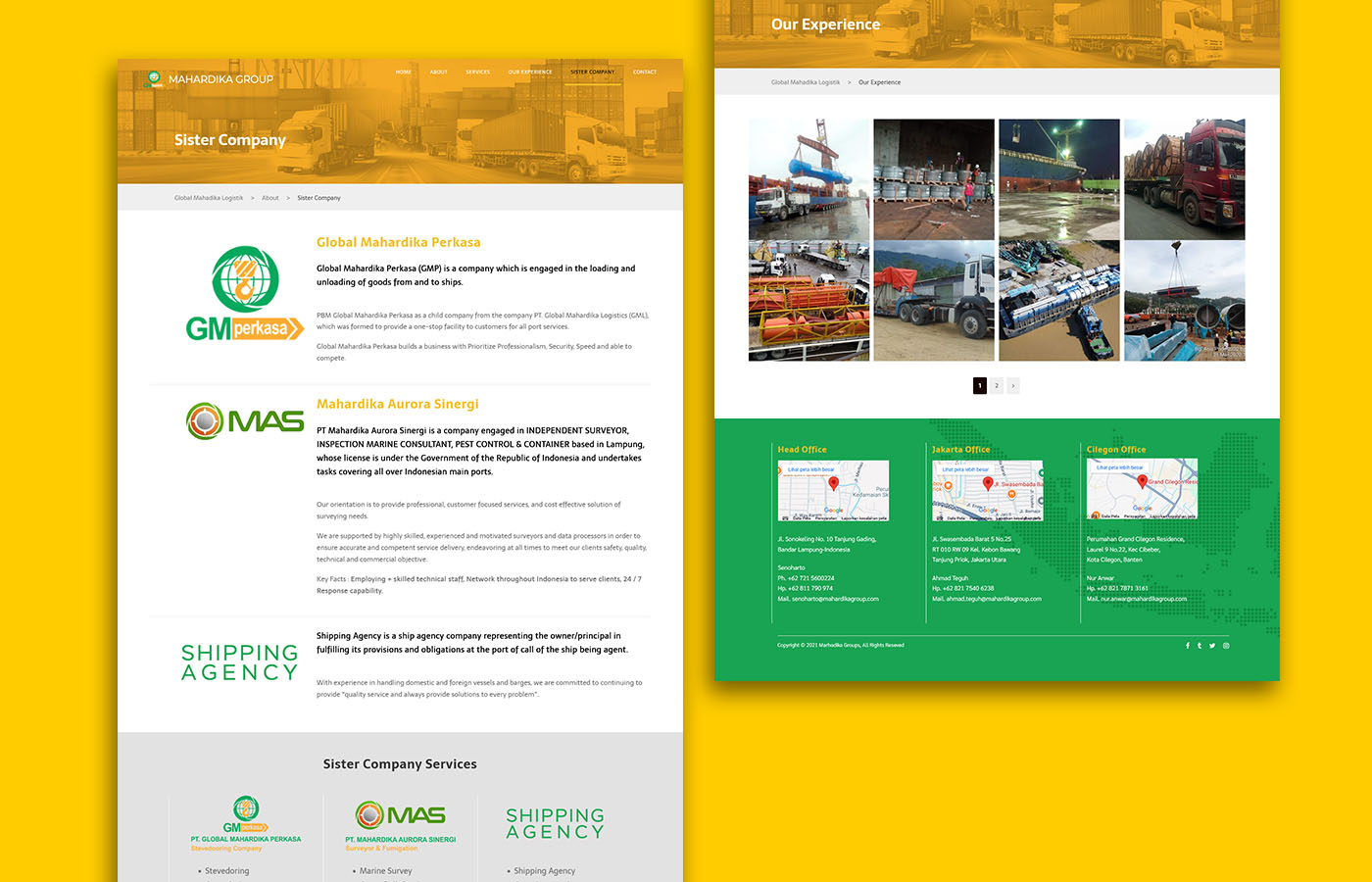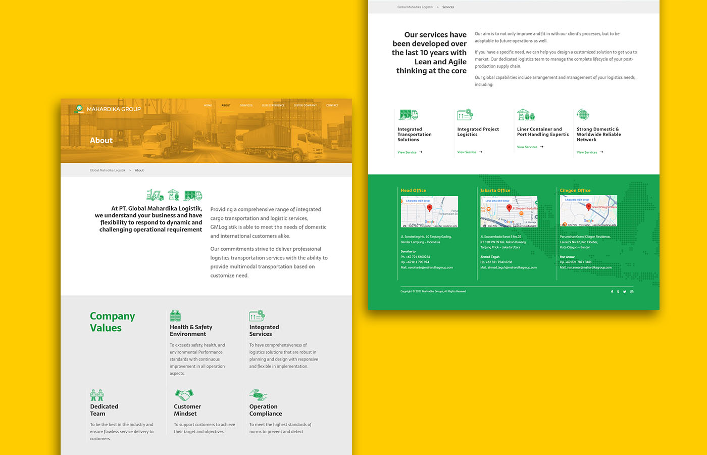 Desain Website Global Mahardika Logistik yaitu perusahaan yang bergerak dibidang logistik dan layanan kargo. Website berisikan company profile dari perusahaan logistik ini dengan informasi mengenai profil, jasa, pengalamaan dan kontak.