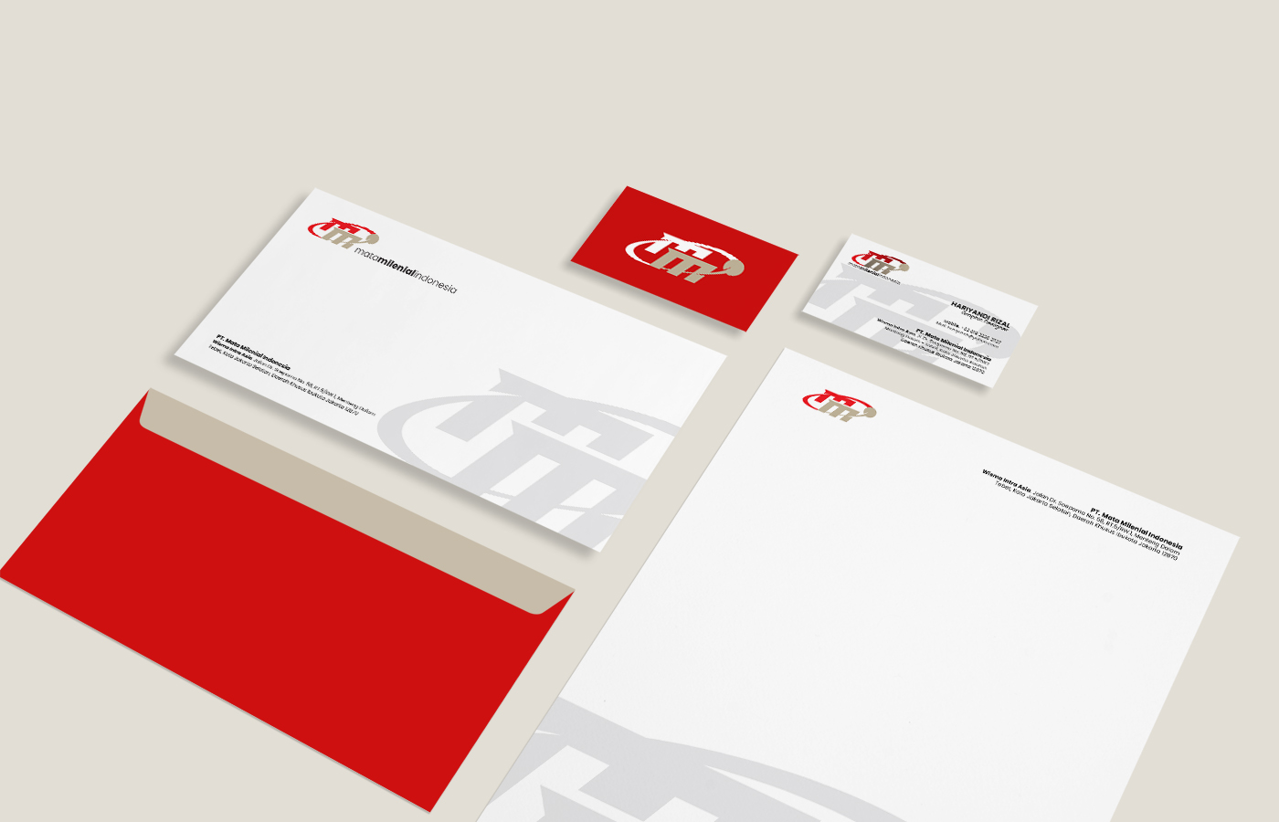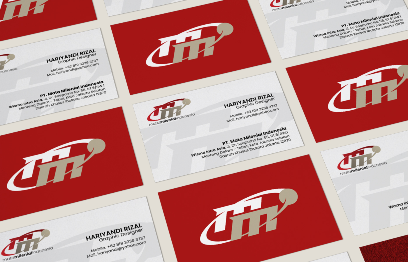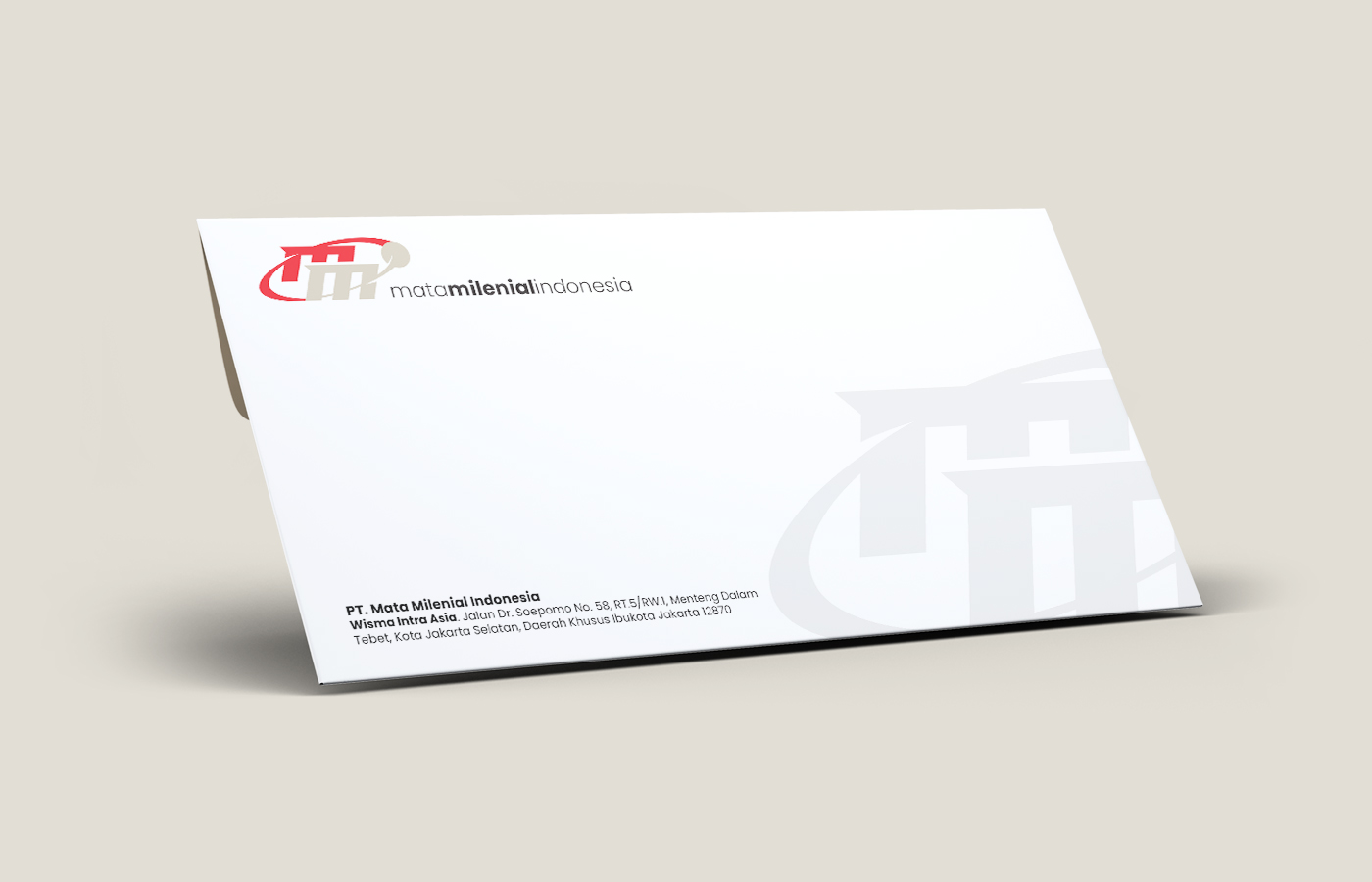 Logo brand MMI (Mata Milenial Indonesia), yang bergerak di bidang berita dan TV online, dirancang untuk memancarkan kesan dinamis dan modern, sangat sesuai dengan target audiens milenial. Desainnya menonjolkan inisial “MMI” dengan sentuhan yang futuristik; dua huruf ‘M’ yang tumpang tindih memberikan kedalaman, sementara elemen swoosh merah yang mengelilingi dan menukik, ditambah objek bulat seperti satelit, mengisyaratkan kecepatan penyebaran informasi, konektivitas global, dan teknologi digital. Kombinasi warna merah dan abu-abu/cokelat muda menciptakan kontras yang kuat, di mana merah menyimbolkan energi, gairah, dan berita yang mendesak, sedangkan warna netral memberikan kesan kredibilitas dan profesionalisme. Secara keseluruhan, logo ini berhasil menggabungkan identitas nama perusahaan dengan fungsi utamanya sebagai platform media digital yang progresif.